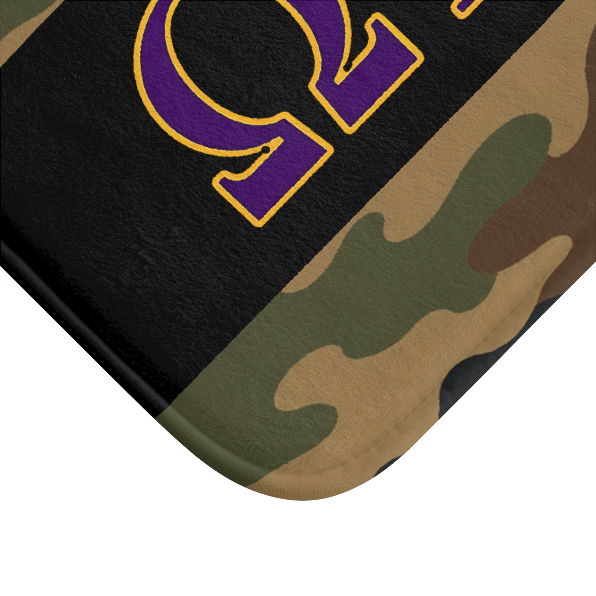 Step into comfort, heritage, and distinguished Que pride with this Omega Psi Phi Camouflage Memory Foam Bath Mat, designed in the classic purple, gold, black, and camouflage colorway that reflects brotherhood and excellence.